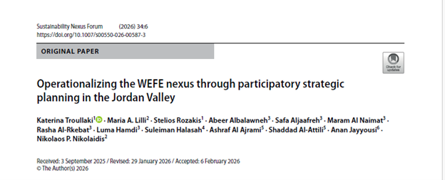 Read the full paper here: Operationalizing the WEFE nexus through participatory strategic planning in the Jordan Valley