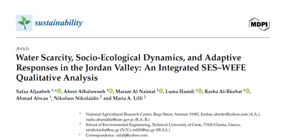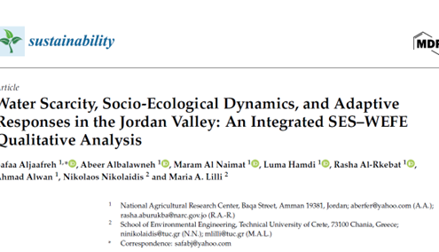 Read the full paper here: Water Scarcity, Socio-Ecological Dynamics, and Adaptive Responses in the Jordan Valley: An Integrated SES–WEFE Qualitative Analysis
